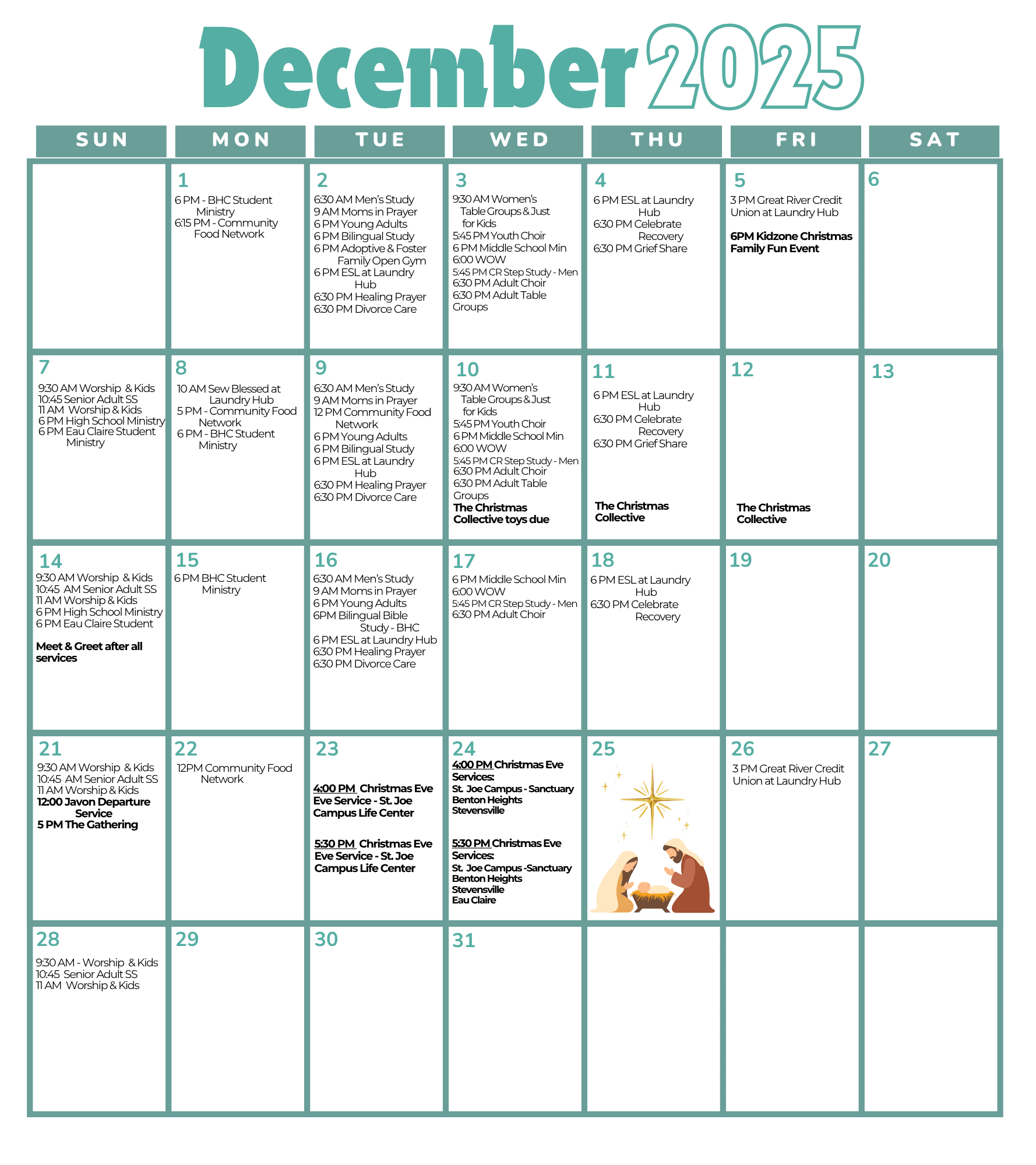 Monday–Thursday, 8:00 AM–4:30 PM: Drop off donations at the St. Joseph Campus.