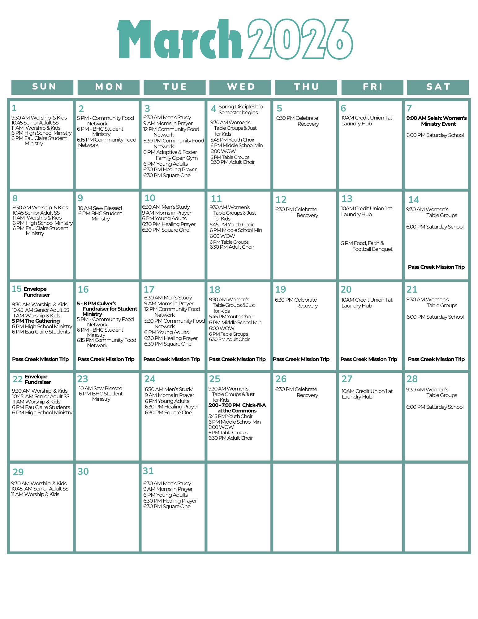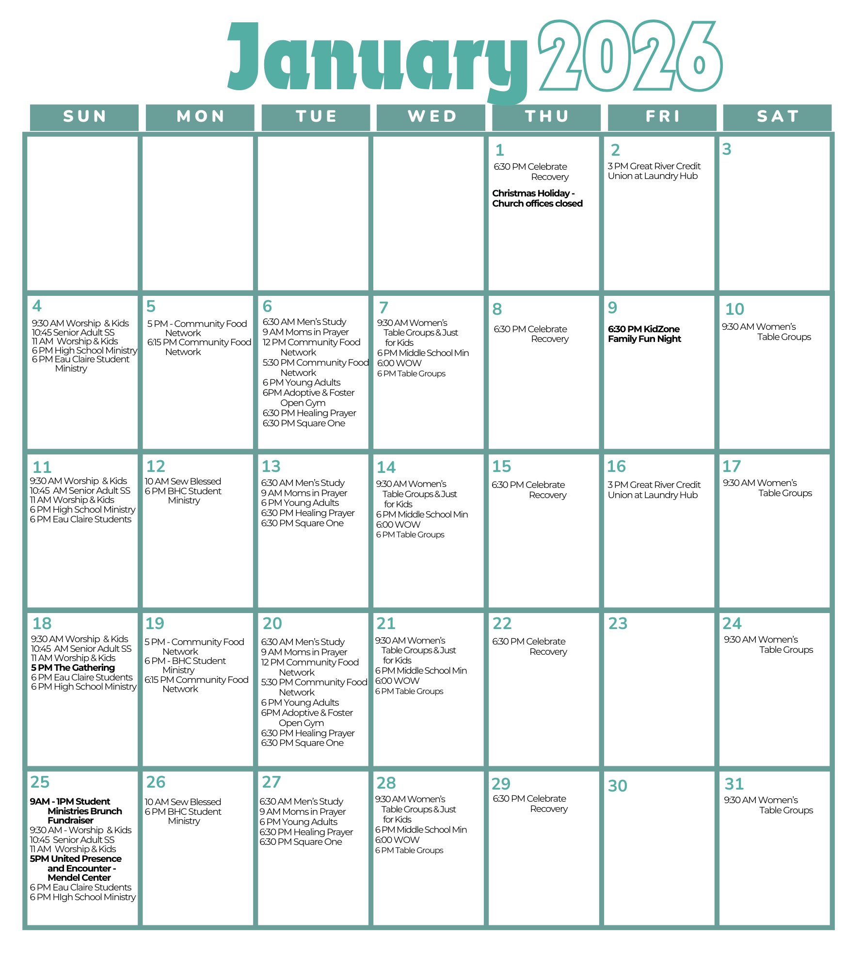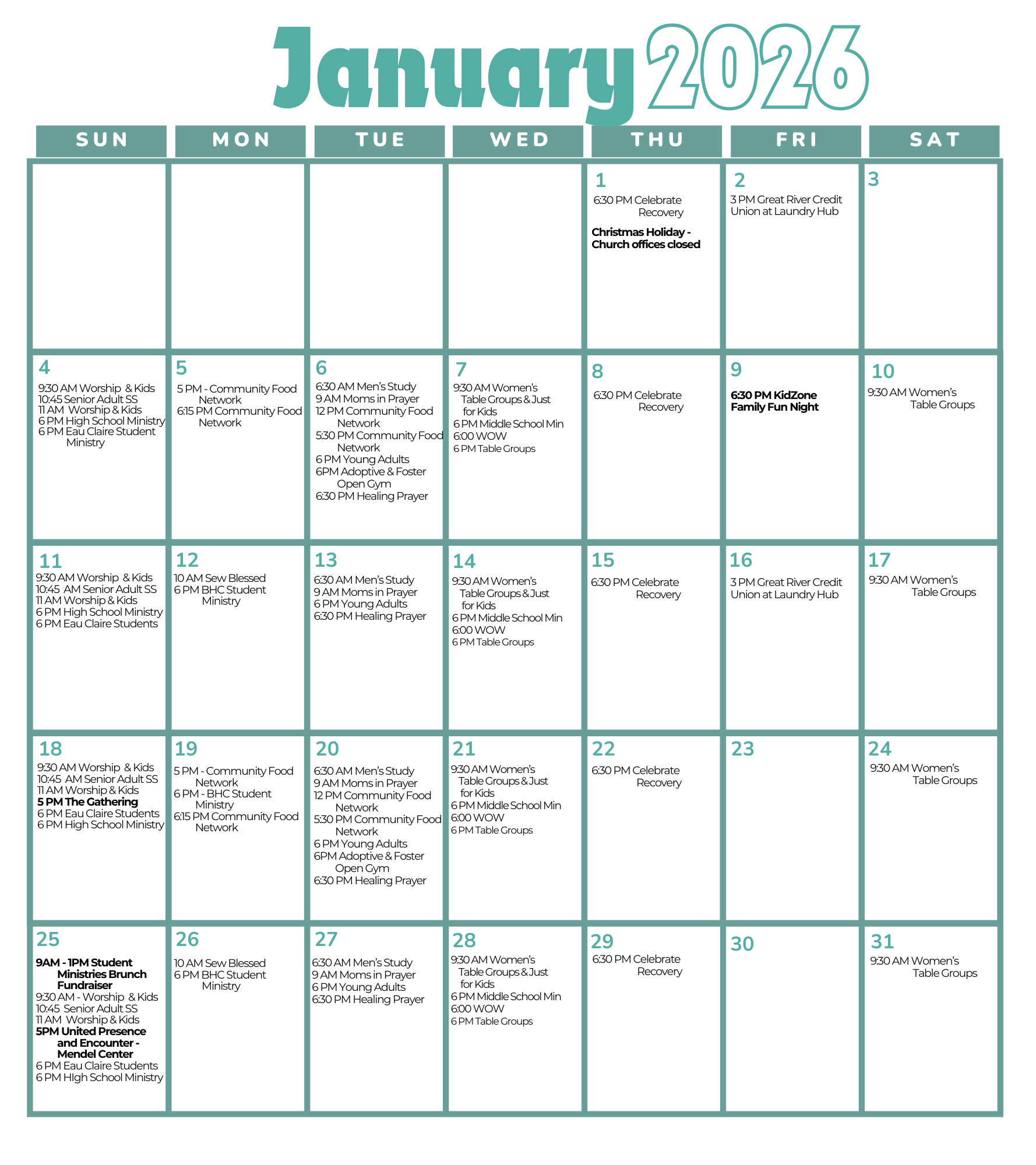Check back here regularly to see what's coming up at First Church. We have events for everyone - adults, students, children, men, women.