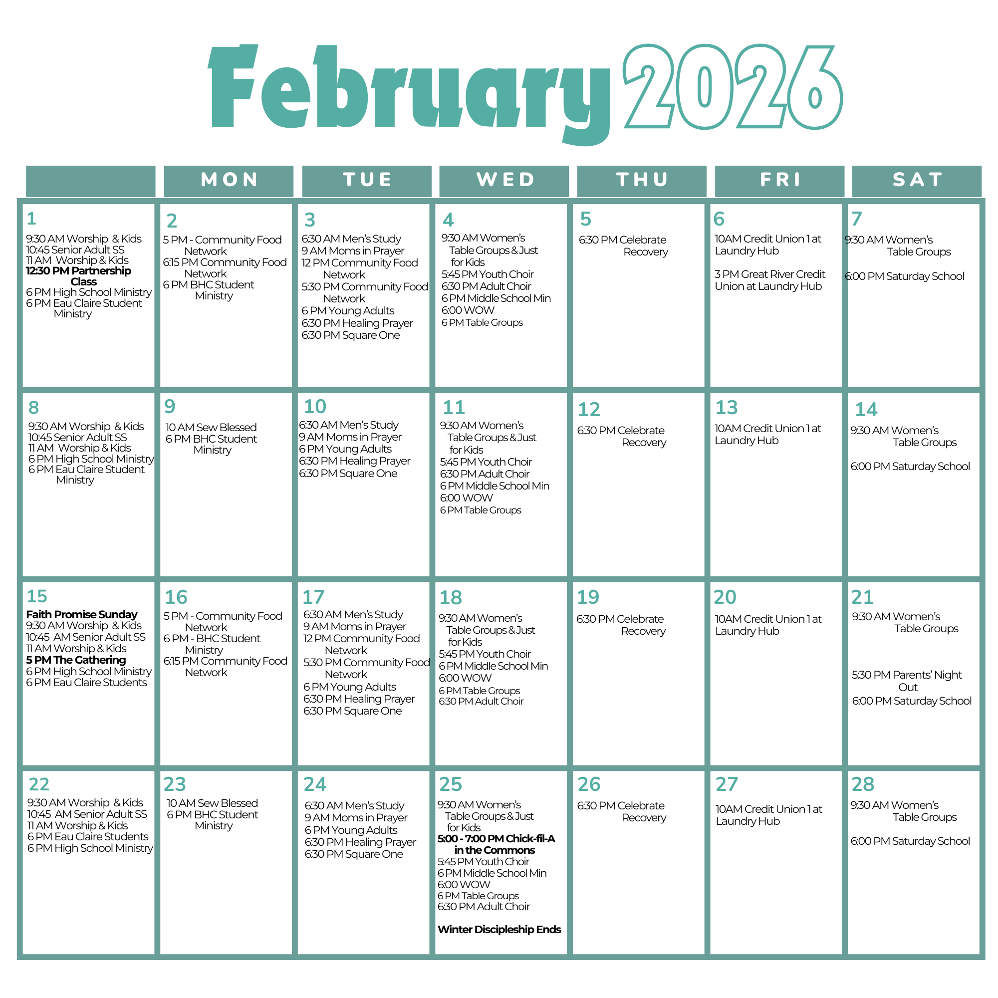 Parents, enjoy a night away while your kids enjoy a fun and safe evening at church! Parents’ Night Out is happening on Saturday, February 21, 2026, from 5:30–7:30 PM at the St. Joseph Campus.
